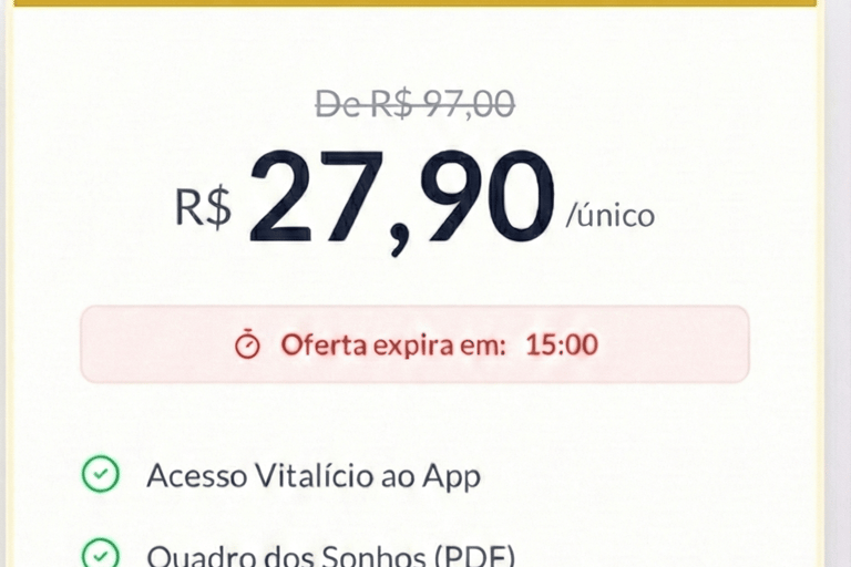 Não! É pagamento único. Você paga uma vez e tem acesso vitalício ao aplicativo, todas as atualizações futuras e ao quadro dos sonhos.